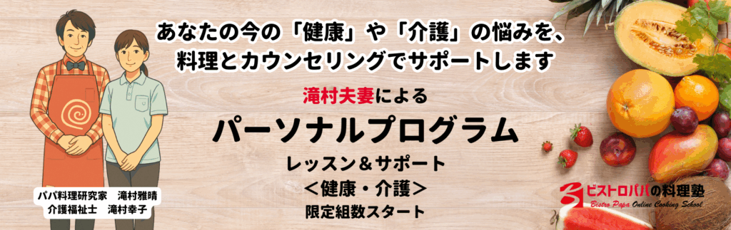 - 医療行為・治療ではありません。日常の食生活改善・介護サポートに関する伴走プログラムです