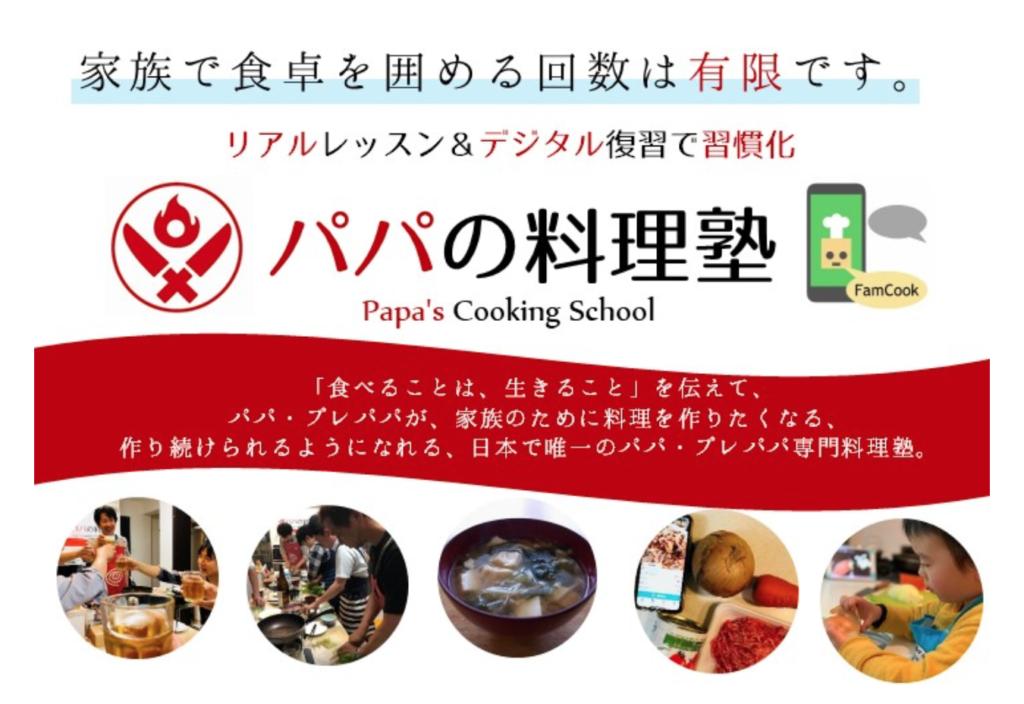 「食べることは、生きること」を伝えて、パパ・プレパパが、家族のために料理を作りたくなる、 作り続けられるようになれる、日本で唯一のパパ専門料理塾です。 パパが、100年ライフ時代を楽しく生きるための健康料理や、食生活習慣についてもお伝えします。