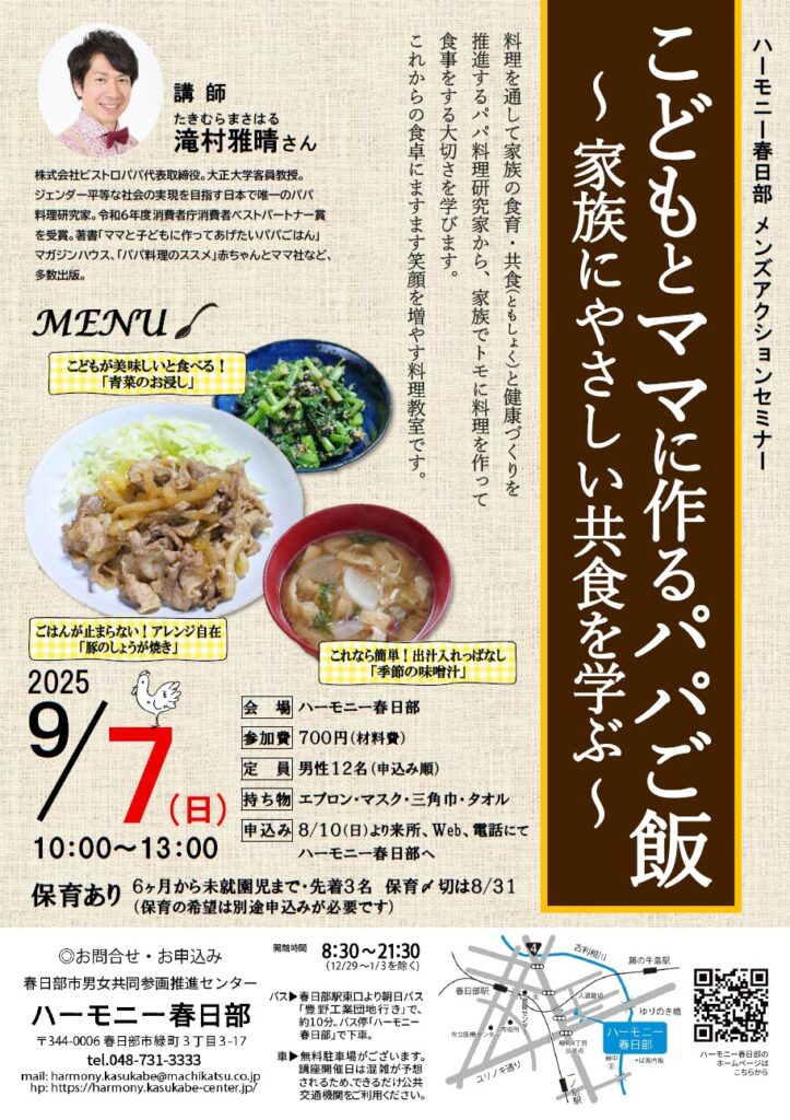 【料理教室】こどもとママに作るパパご飯~家族にやさしい共食を学ぶ~@埼玉県春日部市 2025年9月7日(日)