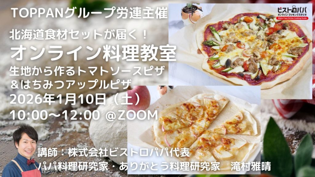 【オンライン料理教室】北海道食材セット付き 総勢200名以上でピザ作り!労働組合主催 2026年1月10日開催
