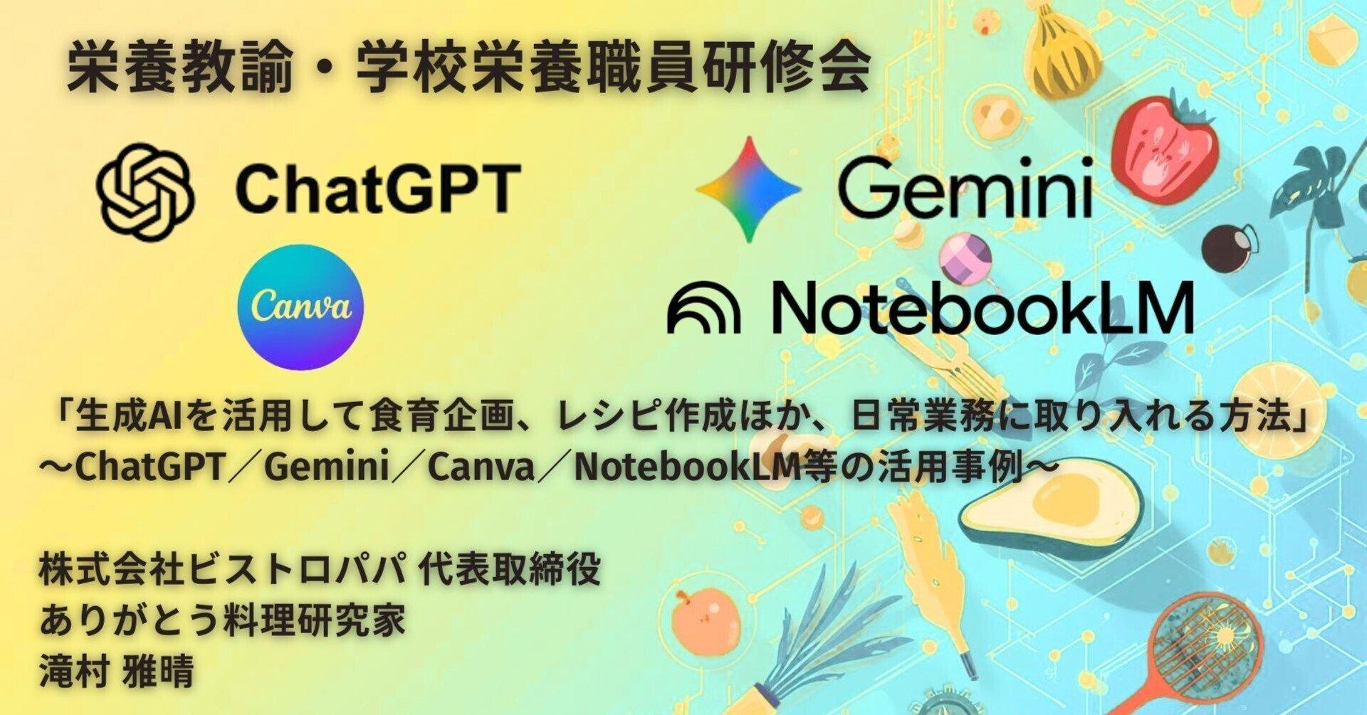 「生成AIを活用して食育企画、レシピ作成ほか、日常業務に取り入れる方法」