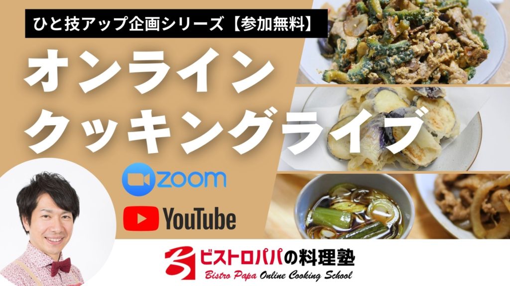 Zoomを使って40分間、料理初心者の不安やご希望を伺いながら、主宰の滝村雅晴が直接ご案内します。 - 無料オンライン・クッキングライブ