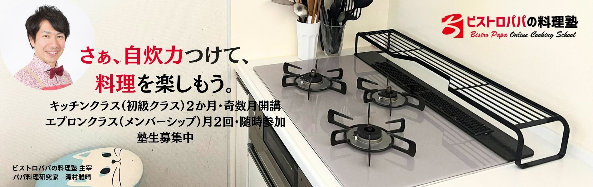 株式会社ビストロパパ(所在地:東京都渋谷区、代表取締役:滝村雅晴、以下ビストロパパ)は、自宅のキッチンから参加できる 「ビストロパパの料理塾(オンライン料理教室)」 を本格始動します。2025年9月より、料理初心者が自炊力を身につける短期集中型 「キッチンクラス」 と、料理を楽しく続けるためのメンバーシップ制 「エプロンクラス」 を新たに開講いたします。